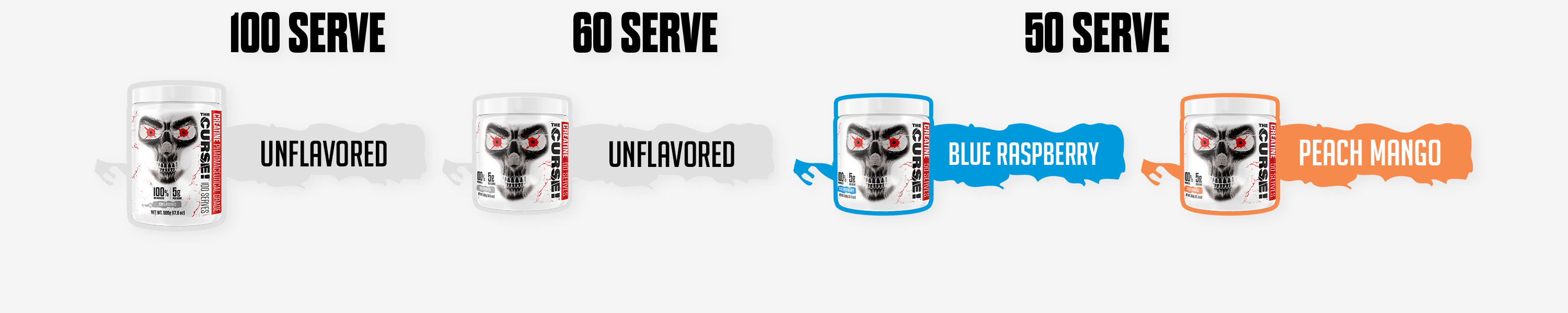 Choose your size and flavour, then smash ADD TO CART. Fuel your muscles with The Curse! Creatine Monohydrate and dominate your workouts.