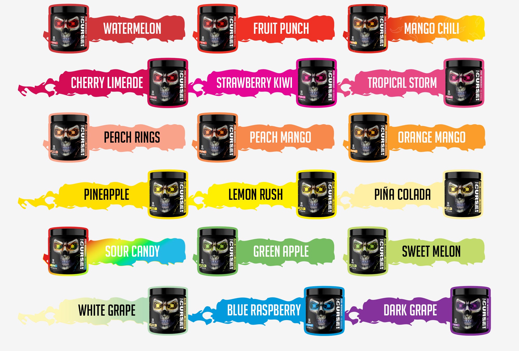 Every tub of The Curse! packs 50 servings — that’s less than 60 cents per workout. There are 16 refreshing flavors to choose from. Mix one scoop with 6–8 oz of cold water for a delicious taste with zero grit.