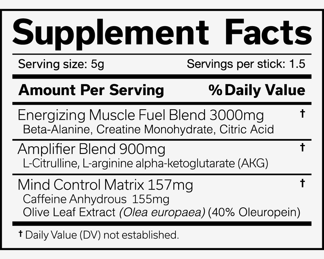Consume 1 stick 20–30 minutes before training. Do not exceed 2 sticks in 24 hours. Avoid taking within 4 hours of bedtime due to caffeine content.